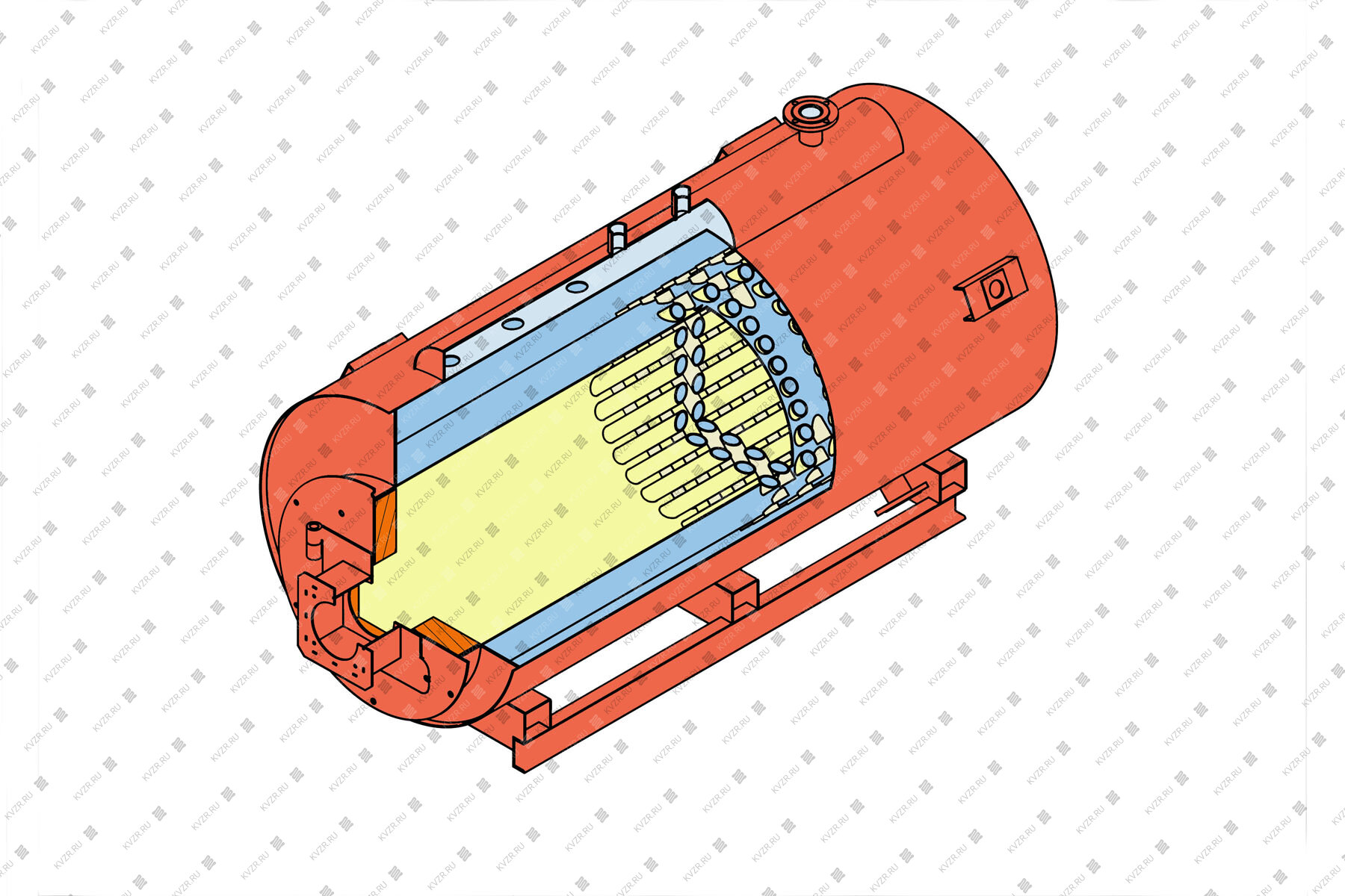 Газовый паровой котел паропроизводительностью 2500 кг с t 170 °С - энергоэффективный, жаротрубный, горизонтальный, компактный, круглый, с естественной циркуляцией и высоким КПД.