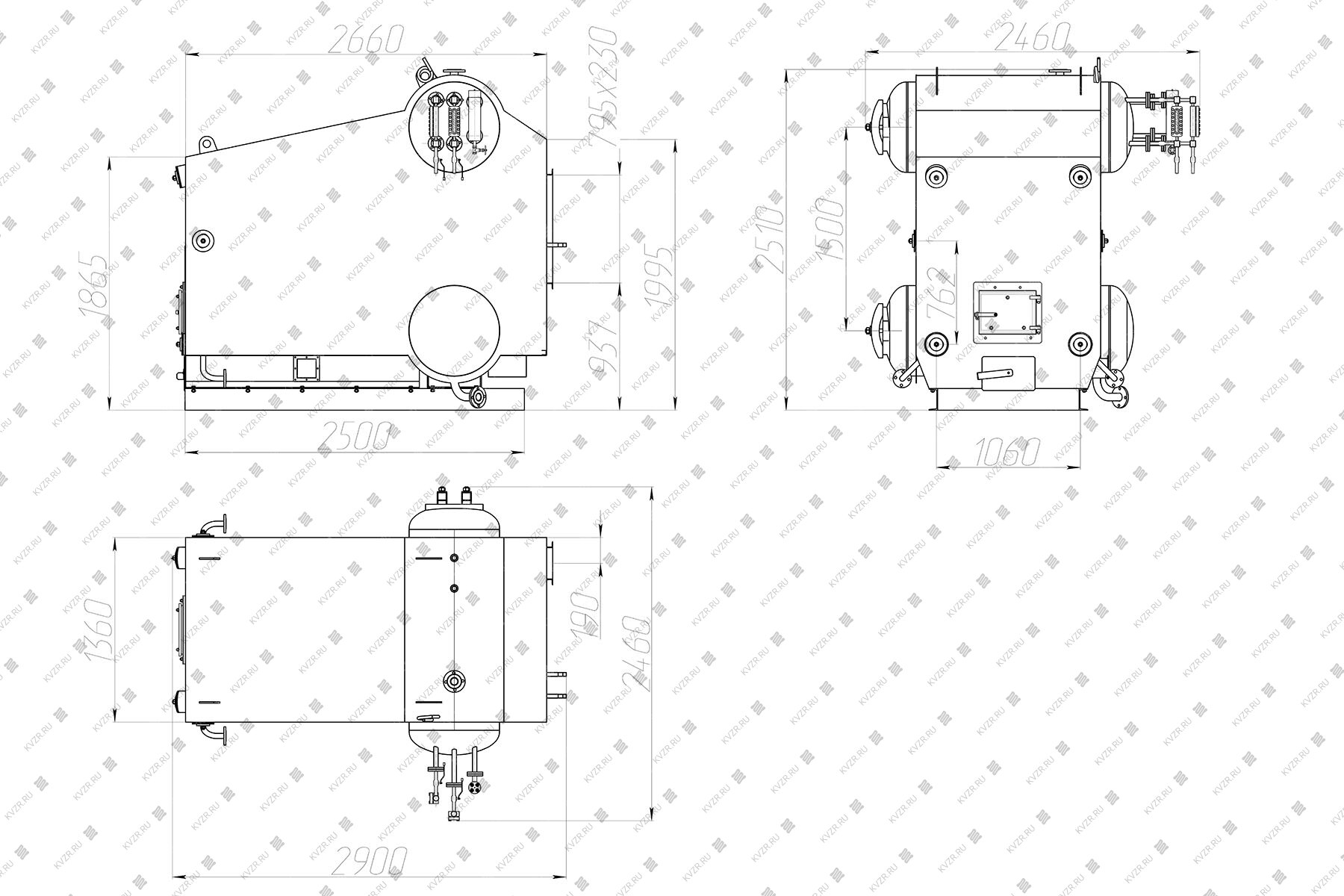 С боку корпуса устанавливается соединительная колонка для монтажа указателей уровня. С боку и снизу корпуса имеется люк для регулярного осмотра поверхностей нагрева со стороны водяного объема.